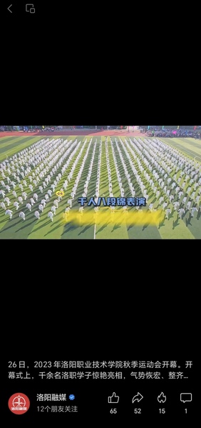 编者按:2023年10月30日,河南省微信视频号报道文化传承进校园!我校运动会的开幕式上,千名师生一