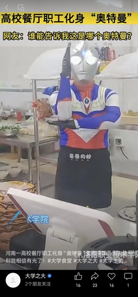 大学之大:河南一高校餐厅职工化身“奥特曼”卖肉夹馍