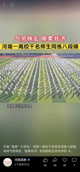 河南高教微信视频号:河南一高校千名师生同练八段锦