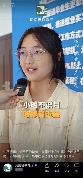 编者按:2023年9月29日,河南省教育厅微信视频号报道关于月的诗句,你能对上几句呢?其中有我校学生