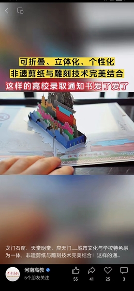 河南高教微信视频号:这样的高校录取通知书爱了爱了