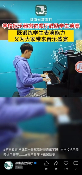 河南省教育厅抖音号、视频号:从此每一餐都能伴着音乐下饭!当学校把乐器搬进了餐厅……