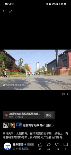 豫教思语视频号:鸟鸣风吟,太阳初升。河南高校的早晨。