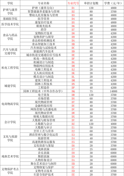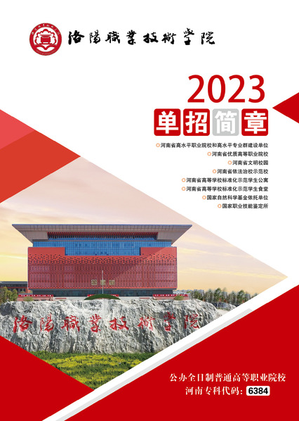 1.2023年单招招生专业代号及计划2.志愿填报符合条件的考生须于2023年3月22日9时至3月24日18时登录“河南省普通高校招生考生服务平台”(https://pzwb.haeea.cn)进行网上志愿填报。在规定时间内,考生只能填报一所高校志愿,并可以进行不超过两次的志愿修改,以网上最后一次保存的志愿为准。填报时间截止后将无法补报和更改,提醒广大考生按时认真填报志愿。我校河南专科招生代码:63843.准考证打印考生登录学校官网自行打印本人准考证,学校不再打印发放。考生打印准考证前须填写“是否同意调剂志愿”。时间:4月6日8:00——4月9日10:00考试事宜通过学校招生信息网(http://zjc.lypt.edu.cn/)发布。4.考试时间与科目(1)考试时间:2023年4月8日-9日(具体时间请自行打印准考证查看)(2)考试内容与方式“文化素质”考试:语文、数学综合试卷;闭卷笔试;考试分值:每科150分,总分300分;参加人员:中职生、社会考生、无高中学业水平测试成绩的高中生。职业技能测试和职业适应性测试:①普通类考生:闭卷笔试;分值300分;②艺术类(戏曲表演、音乐表演、舞蹈