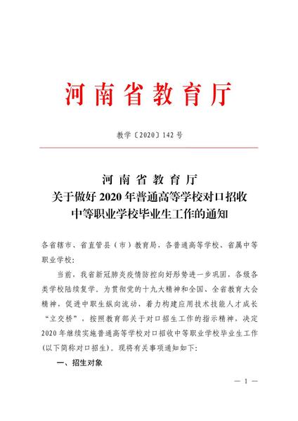 河南省教育厅关于做好2020年高职单招准备工作的通知