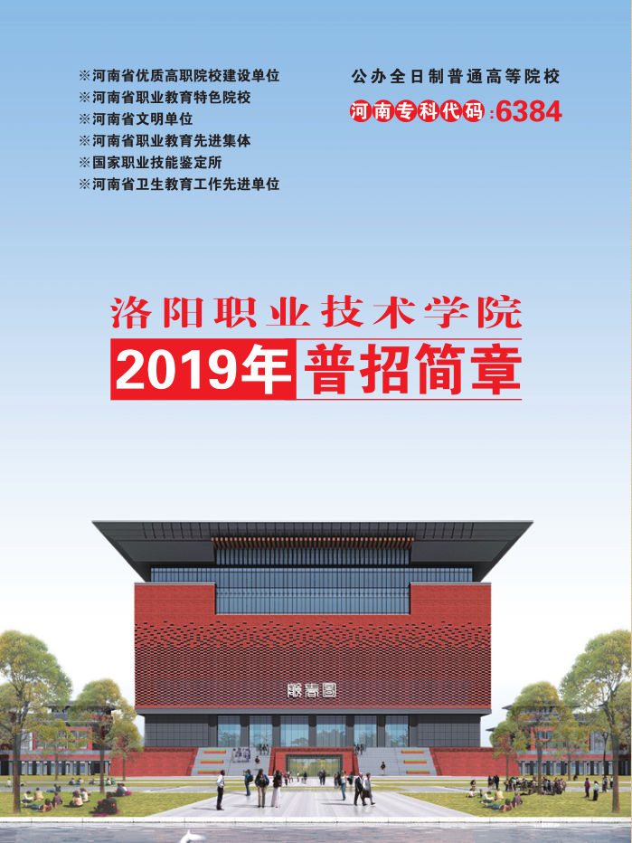 学院名称:洛阳职业技术学院,部标代码:14383本省代码:6384办学性质及层次:公办全日制普通专科(一)招生对象已参加2019年普通高考(含对口招生)报名和高职扩招补报名,但未被高校录取的考生(二)招生专业计划及专业报考代号请各位考生按照自己的报考科类及群体所对应的专业代号进行报志愿,否则因科类及群体报考错误将无法参加本次扩招考试。注:A为退役军人可报专业类,B为新型职业农民(含村“两委”干部、新型农业经营主体带头人、乡村社会服务组织带头人、乡村致富带头人、农业技术人员等)可报专业类,C为其他(含应往届高中和中职毕业生、农民工、下岗失业人员、企业在职职工等)群体可报专业类,考生须按个人所属类别分类报考相应专业。(二)志愿填报考生填报志愿时间为2019年11月13日9:00至11月14日18:00。每名考生只能填报1所高校1-5个专业以及是否同意校内同类别专业间调剂(A、B、C三类专业间不可相互调剂),在规定填报志愿时间内最多可进行两次志愿修改,以考生最后一次保存的信息为准。网上填报时间截止后无法更改志愿信息。考生凭本人网上报名账号和密码登陆“河南省普通高校招生考生服务平台”(http
