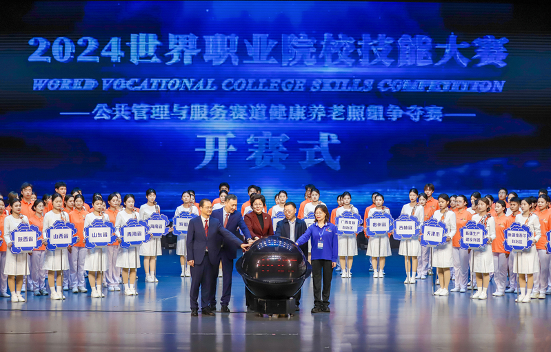 10月30日,2024年世界职业院校技能大赛公共管理与服务赛道健康养老照护组争夺赛在我校开赛。河南省教育厅二级巡视员杨学勇,洛阳市人民政府副市长任丽君,教育部大赛执委会委派裁判巡视员周齐佩,河南省教育厅职成教处一级调研员史文生,洛阳市教育局副局长乔思军,我校党委书记赵健、校长李保安,校领导韦元民、张志友、邓卫国出席开赛式。杨学勇、任丽君、周齐佩、赵健、李保安共同启动大赛。任丽君在致辞中表示,近年来,市委市政府深入贯彻习近平总书记关于加快构建现代职业教育体系的重要论述,不断完善现代职业教育体系,持续深化职业教育各项改革,高质量推进“人人持证、技能洛阳”建设。随着“健康中国”战略的深入实施以及老龄化社会带来的挑战,健康照护行业的市场需求日益增多,也进一步推动了洛阳“健康照护”特色职教品牌发展。此次大赛在洛阳职业技术学院举办,各位权威专家、优秀选手在比赛中相互学习,在切磋中交流技艺,为健康养老照护行业打造了高端平台,也为洛阳相关行业和企业提供了宝贵的学习机会。洛阳将以此次竞赛为契机,学习借鉴先进理念,强化产教融合、深化校企合作,努力建设健康养老照护职教人才培养新高地,为“健康河南”“健康中国