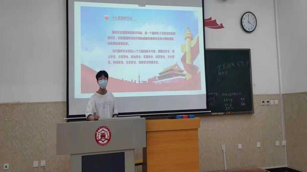 各班团支书在团课上带领同学们了解国家安全日的相关内容,通过视频,图片和文字等方式深入学习国家安全相关法律法规,讲述危害国家安全的行为,同学们积极讨论,踊跃发言。