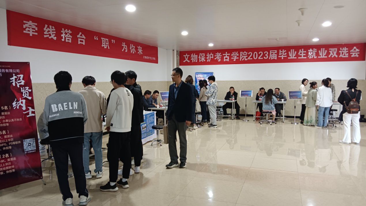 为深入学习贯彻党的二十大精神,落实党中央、国务院“稳就业”“保就业”决策部署以及教育部办公厅《关于开展2023届高校毕业生春季促就业攻坚行动的通知》精神,按照学校做好就业相关工作要求,4月15日,“牵线搭台 ‘职’为你来”——文物保护考古学院2023届毕业生就业双选会在4号教学楼顺利举行。党总支书记、院长杨刚亮,党总支副书记、副院长赵博在现场与用人单位充分交流沟通,学生中心副主任李少沛到就业双选会现场指导工作。