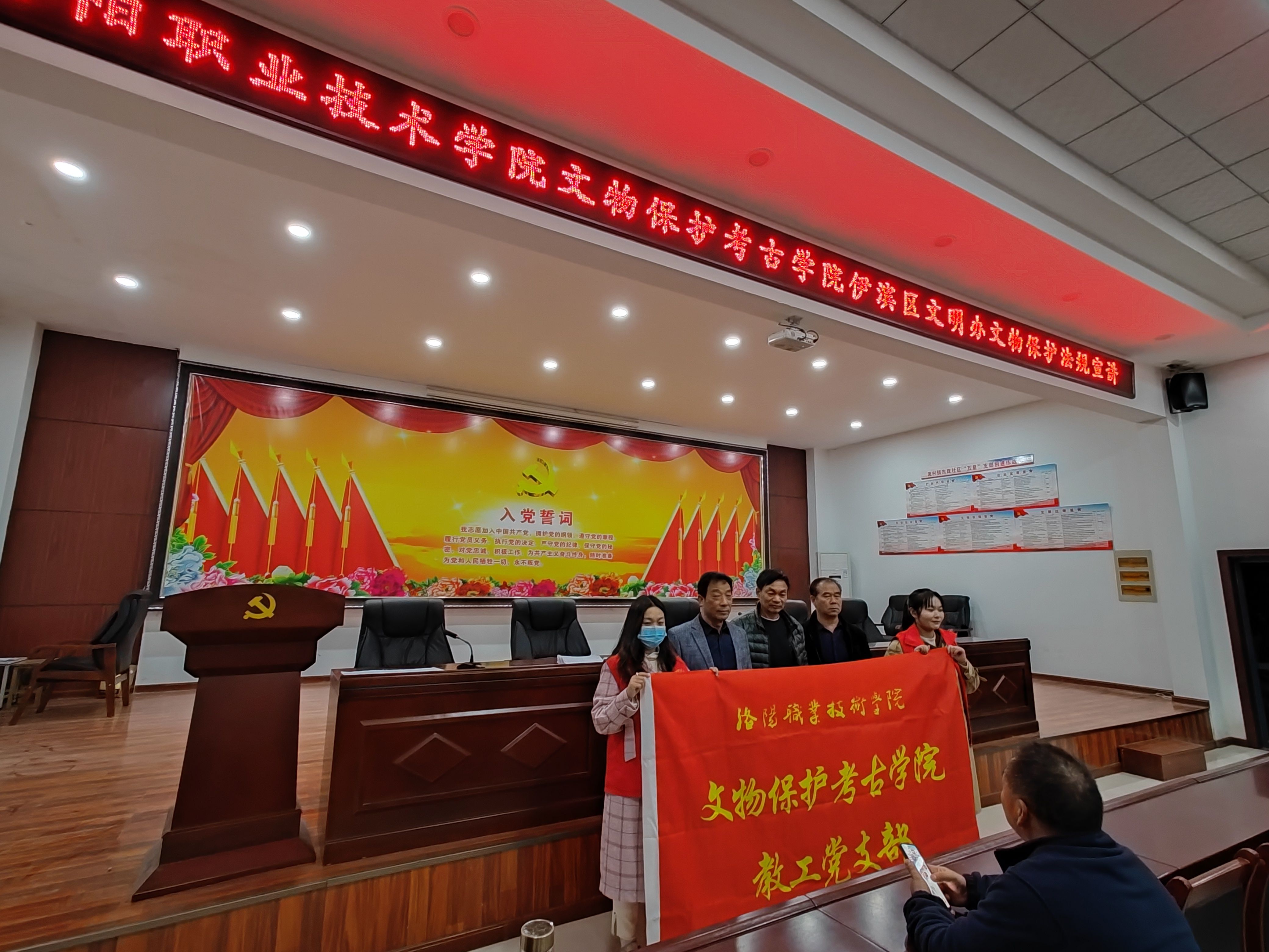 为扎实开展新时代文明实践活动,11月9日,文物保护考古学院教工党支部党员许倩和张尔宁到伊滨区东庞社区党群服务中心为社区群众开展文物保护法规宣讲活动。