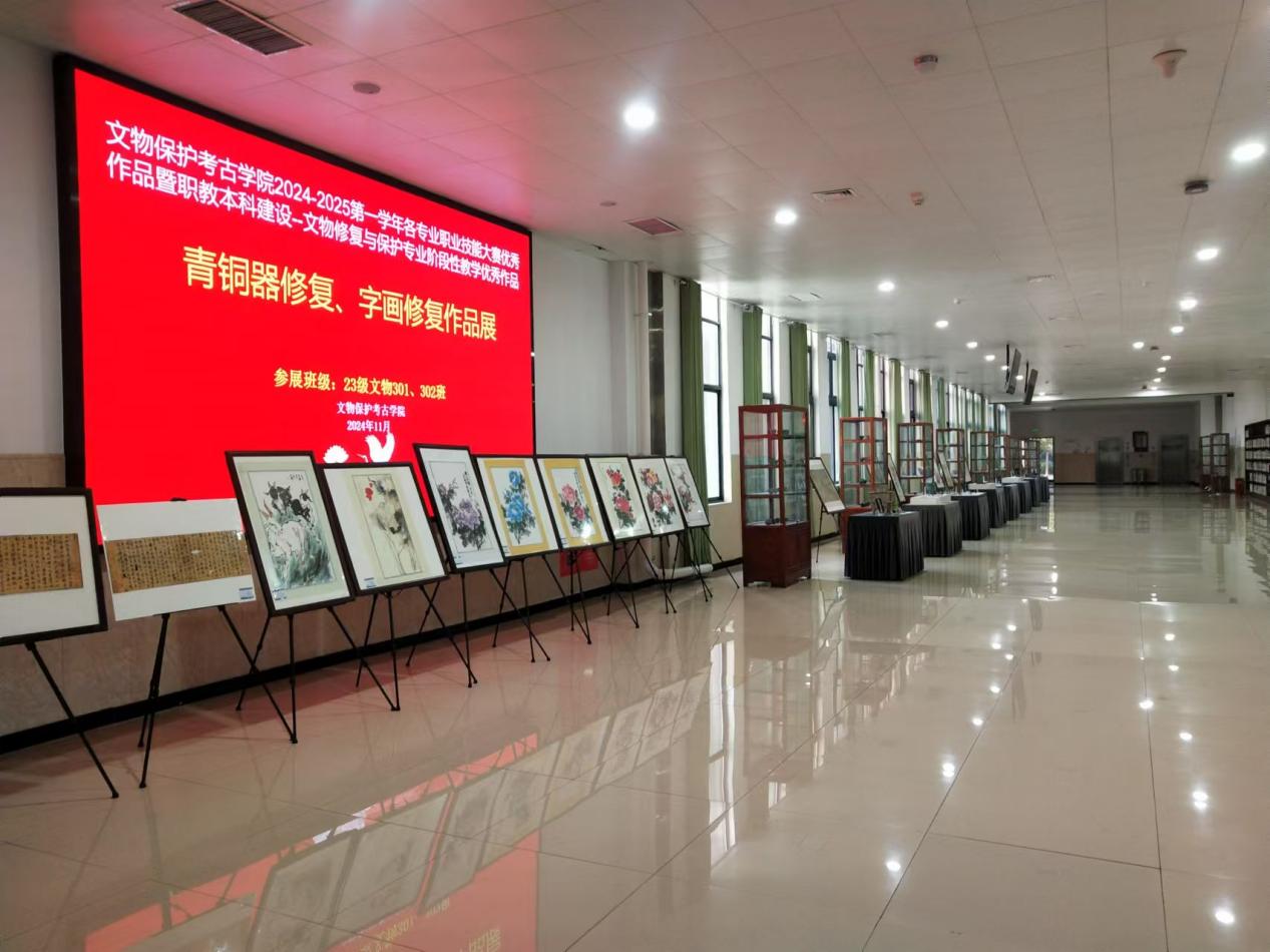 近日,洛职文物保护考古学院2024-2025学年第一学期文物修复与保护专业阶段性教学成果--青铜器修复、字画修复作品展学院6号楼大厅拉开序幕。本次展览是学生对本学期青铜器修复课程与字画修复课程的阶段学习汇报。