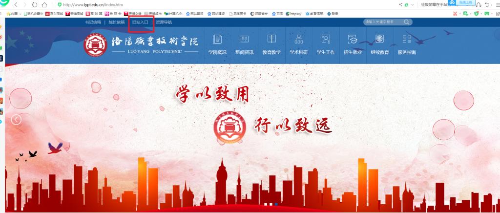 根据国家域名管理规范,经教育部批准的高等院校官方网站,域名后缀均为“.edu.cn”。学院网站旧域名www.lyvtc.net由于不规范将停止访问,域名更新为www.lypt.edu.cn。请各位老师在浏览器地址栏内输入www.lypt.edu.cn浏览洛阳职业技术学院网站,旧网站内容仍然可以访问,通过门户网站顶部的旧站入口进入,如下图红框处所示。