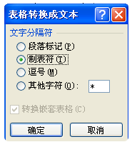 3、弹出表格转换成文本对话框,单击确定按钮即可,如图所示。