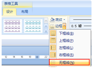 2、单击表格工具zhi设计-----边框----无框线即可,如图所示。