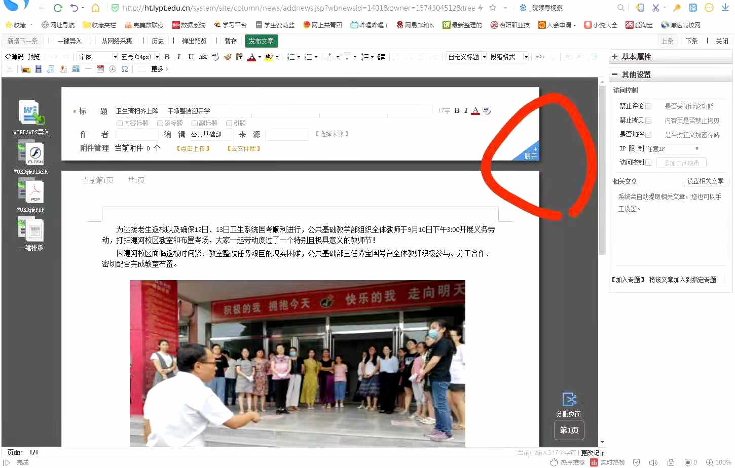 1、打开需要设置标题图的文章编辑界面