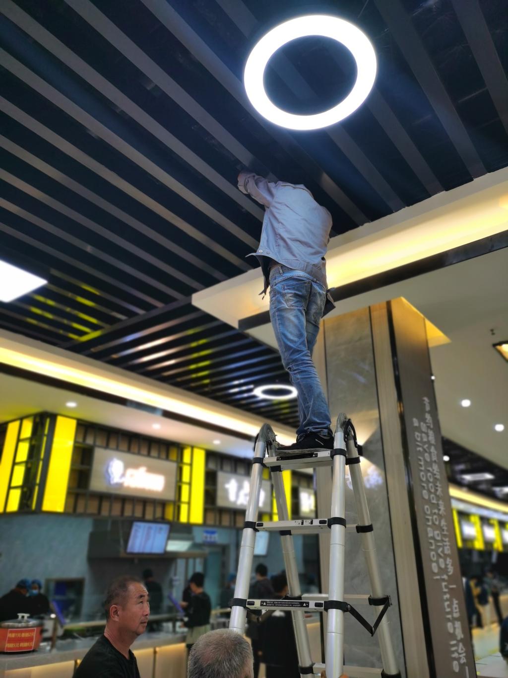 针对大家比较关注的图书馆天井一侧、地下室及食堂内移动信号差、不稳定等现状。网络中心积极与施工方取得联系,并就现阶段信号覆盖实际情况进行反馈,安排工作人员进场施工,截至目前现场施工人员已经完成部分终端设备的安装工程,现阶段正进行室内吸顶天线的安装。如图,施工方正在食堂安装通讯设备。