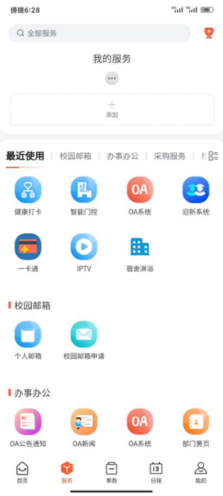 用户打开“健康打卡”服务时候,提示需要登录,使用学工号+身份证后六位作为密码,登录进去之后,根据系统类型再选择打卡服务;