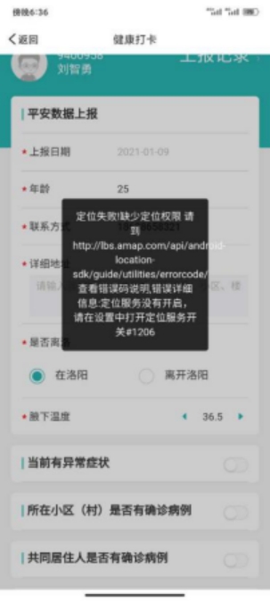 用户在手机-设置-应用管理,清除全部应用数据,再使用学号登录App,点击打卡即可正常使用;