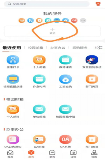 教职工可通过页面上部的分类快速查找所需的功能应用。