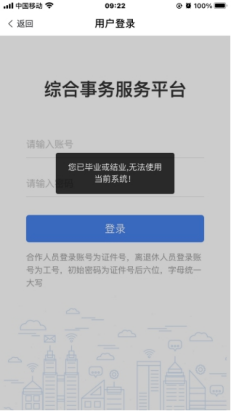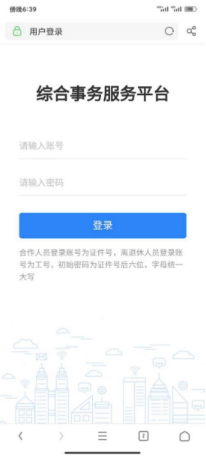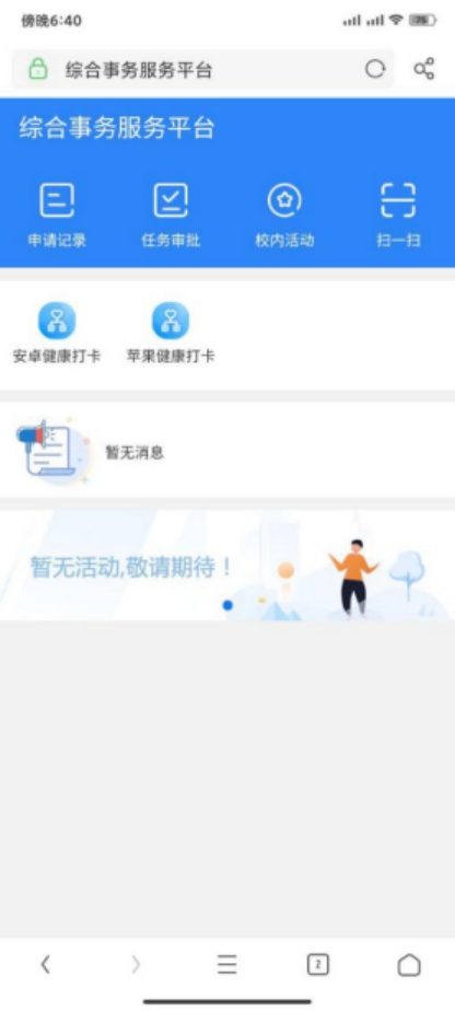 用户打开“健康打卡”服务时候,提示需要登录,使用学工号+身份证后六位作为密码,登录进去之后,根据系统类型再选择打卡服务;