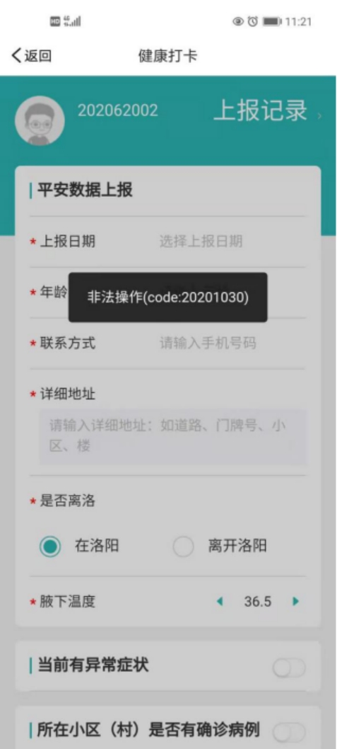用户在手机-设置-应用管理,清除全部应用数据,再使用学号登录App,点击打卡即可正常使用;