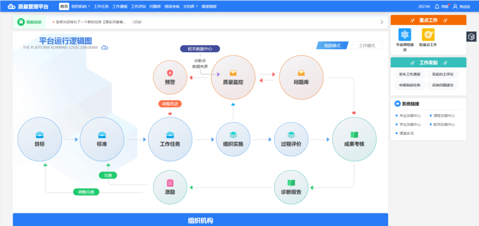 学校在数字化治理领域的创新与实践,为教育教学改革和高质量发展奠定了坚实基础,先后荣获了全国高职院校“实习管理50强”“治理能力50强”,连续两年荣登《中国职业教育质量年度报告》“四大榜单”,推动学校高质量跨越发展向更高水平迈进。图6 治理能力和治理体系现代化