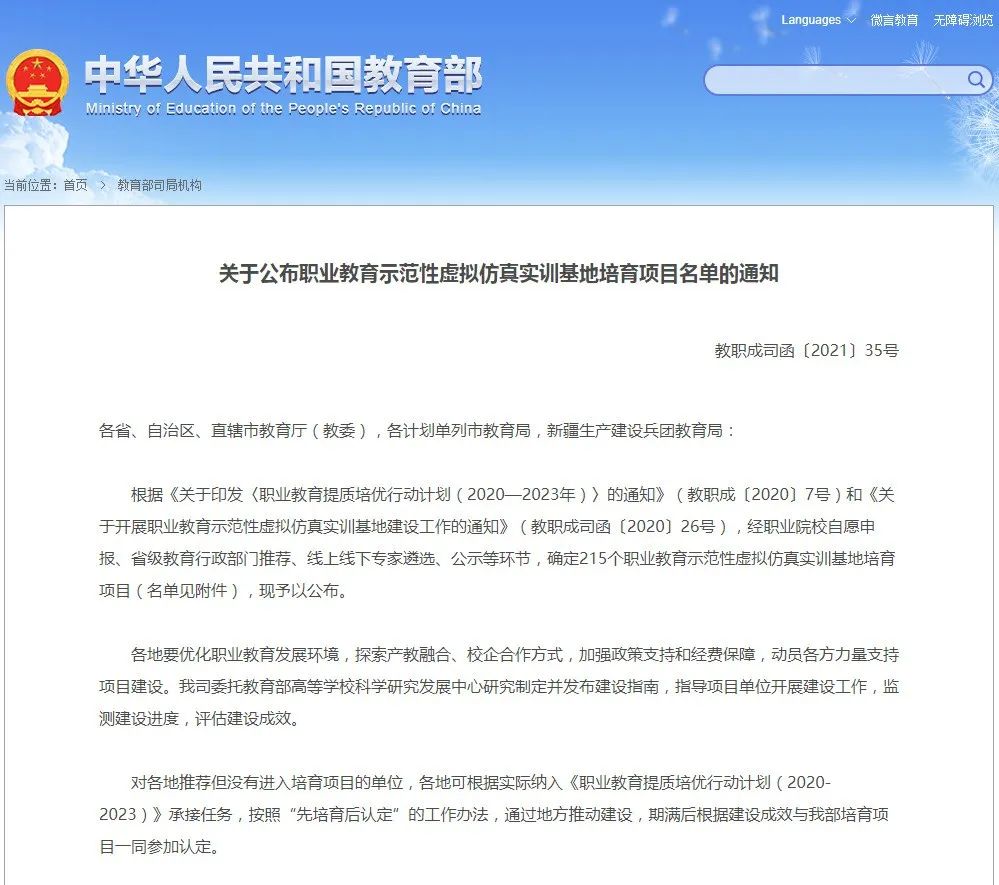图4 职业教育示范性虚拟仿真实训基地培育项目