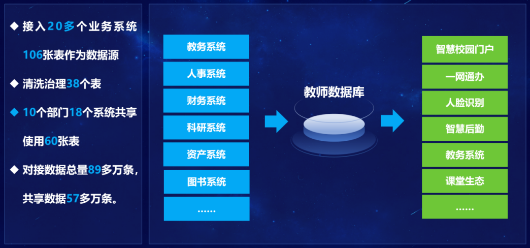 在学校各职能部门的大力支持下,场景化数据治理汇聚整合了教学、科研和管理数据,持续推动了数据开放共享,为教师教育教学提供了数据支持。