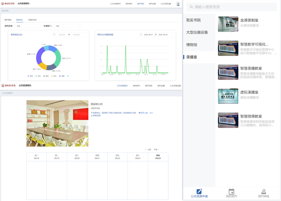 全校教室、会议室、各类场馆、实验室、大型科研仪器分布不均衡,同时也存在部分资源申请预约流程复杂、分配不均、导航混乱等问题,师生满意度不高。