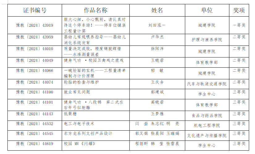 近日,河南省教育厅公布了河南省第二十八届教育教学信息化交流活动评选结果,我校共有12件作品获奖,其中一等奖1项、二等奖5项、三等奖6项。