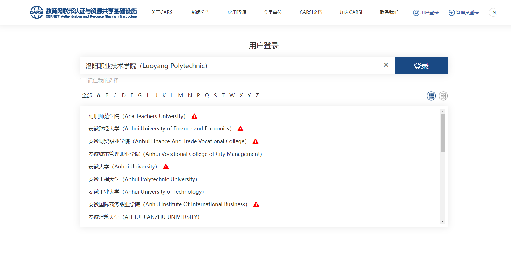 访问入口:chat.zju.edu.cn,点击输入框,弹出登陆界面,选择“CARSI”登录,输入、选择“洛阳职业技术学院”。在身份验证界面输入多彩洛职账号密码即可访问。