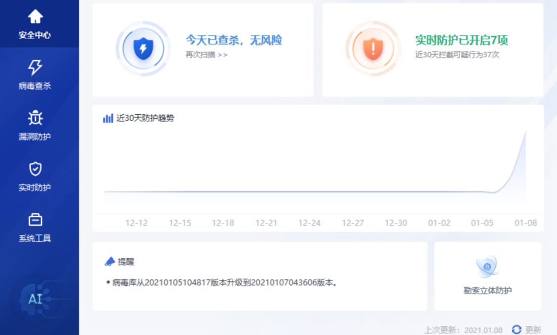 安装完成,点击<开启防护>完成资产信息上报登记,如下图。